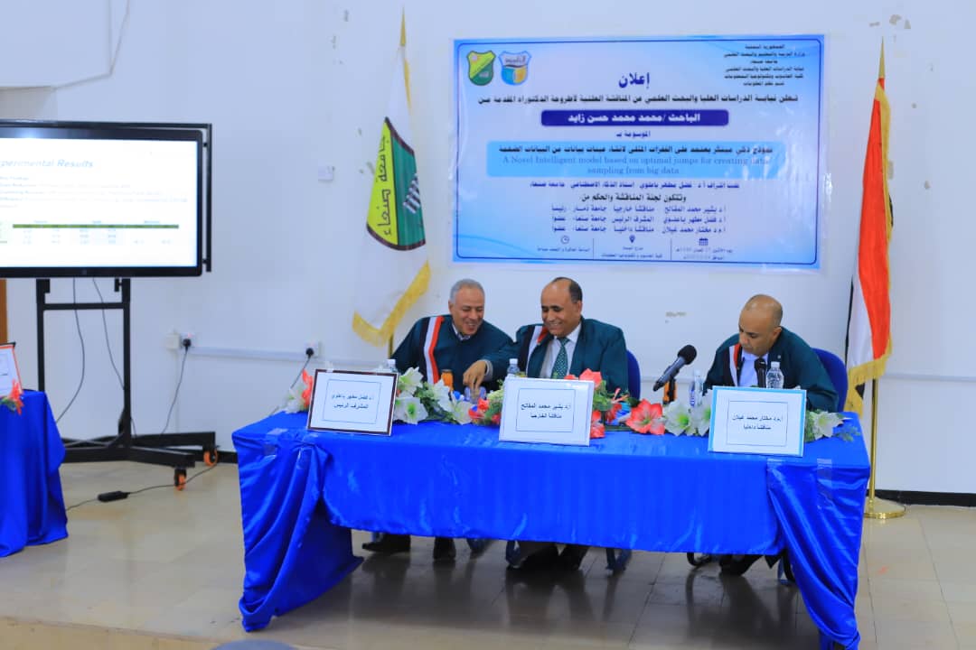 نال الباحث / محمد محمد حسن زايد درجة الدكتوراه بامتياز في الحوسبة وعلم المعلومات قسم نظم المعلومات، تخصص علم البيانات، من كلية الحاسوب وتكنولوجيا المعلومات بجامعة صنعاء، عن رسالته الموسومة ب :