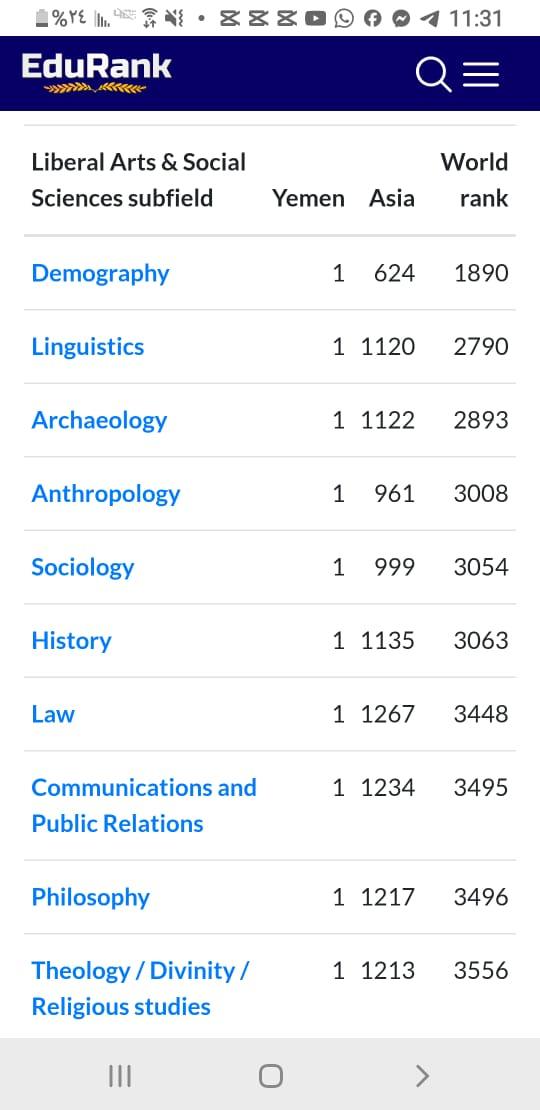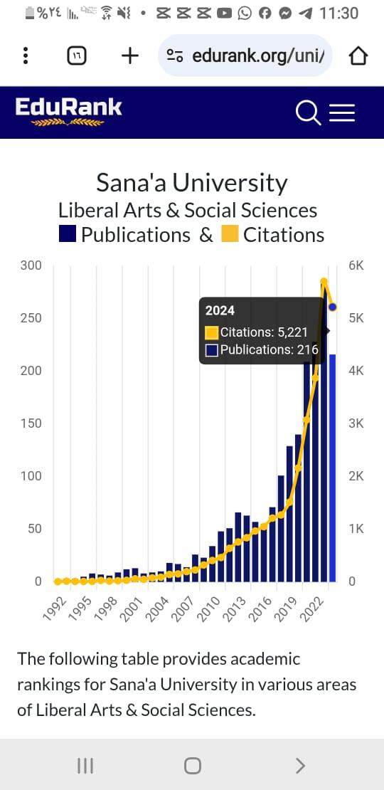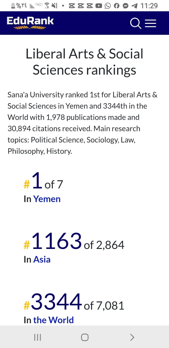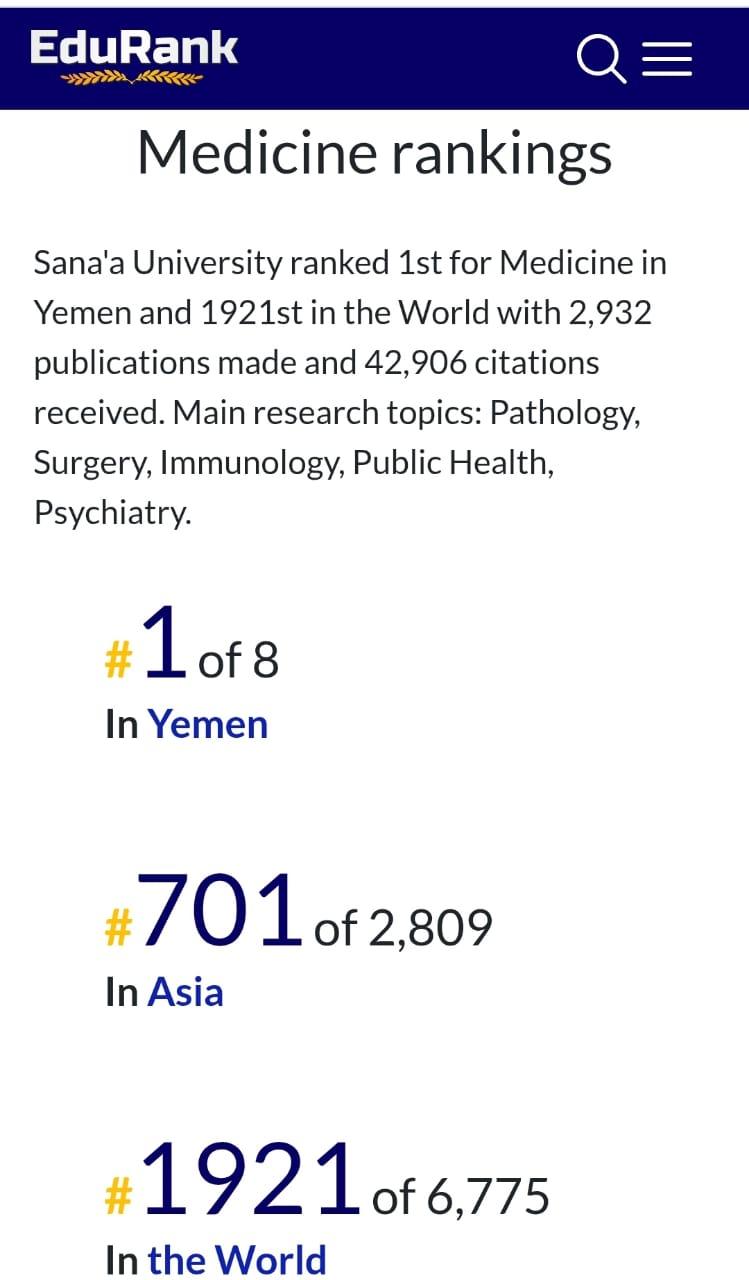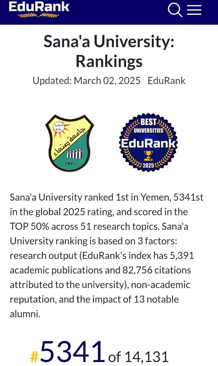 جامعة صنعاء تحتل المرتبة الاولى محلياً في تصنيف EduRank البريطاني وتتقدم آسيوياً وعالمياً