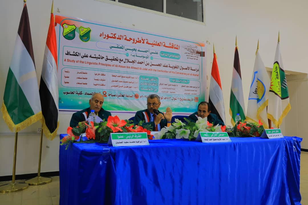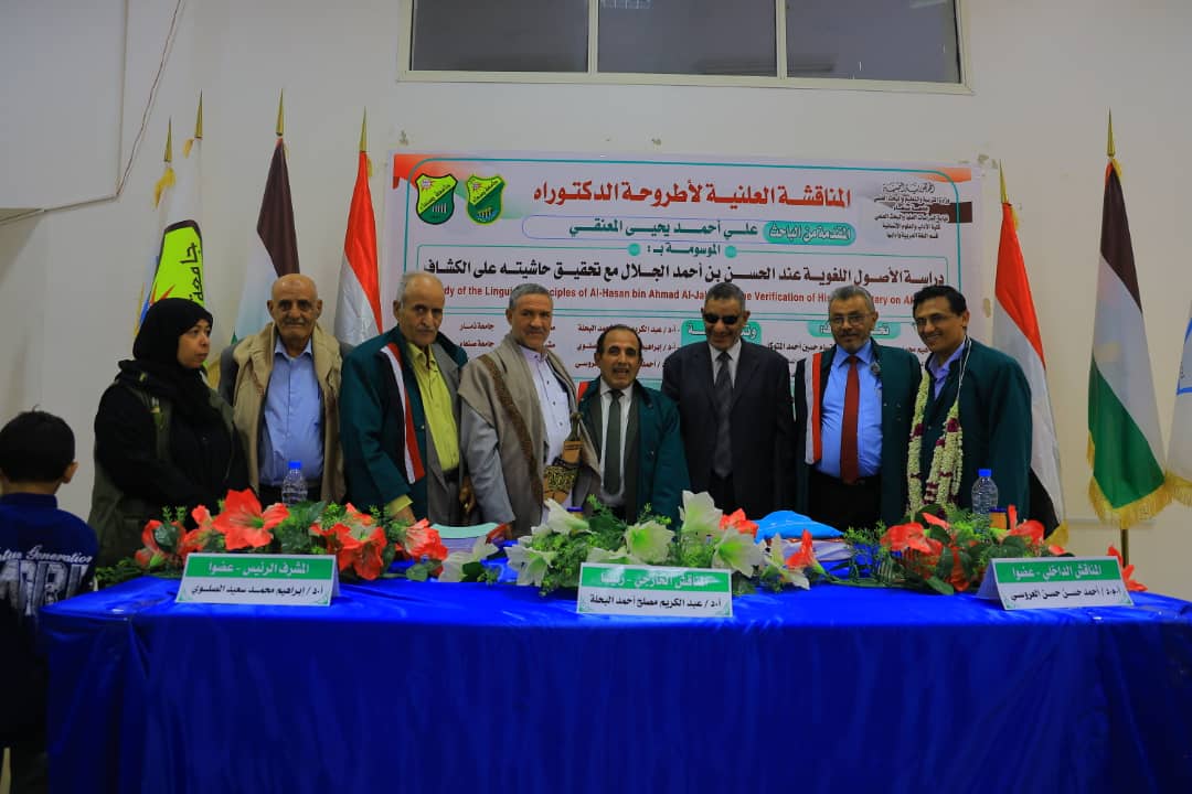 نال الباحث علي أحمد المعنقي درجة الدكتوراه في قسم اللغة العربية، تخصص نحو وصرف، من كلية الآداب والعلوم الإنسانية بجامعة صنعاء؛ عن أطروحته الموسومة بـ “دراسة الأصول اللغوية عند الحسن بن أحمد الجلال مع تحقيق حاشيته على الكشاف” يوم الأربعاء 11 شوال 1446هـ الموافق 9 أبريل 2025م.