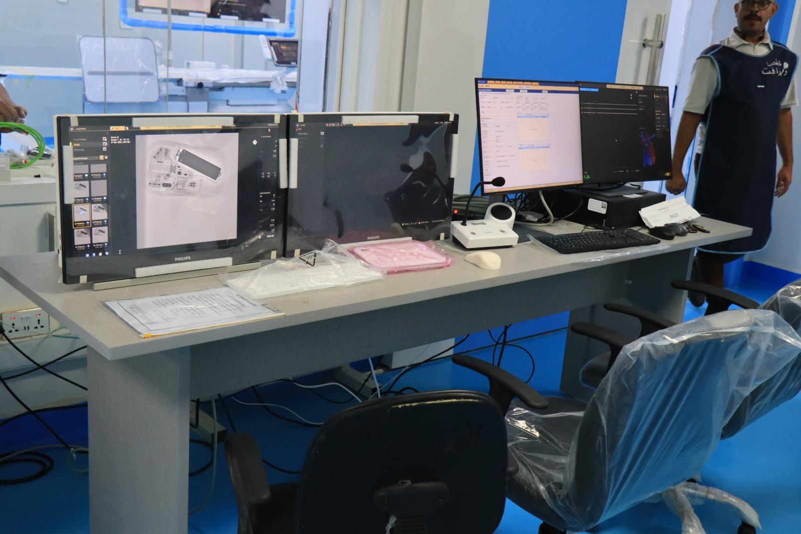 وتعرف الدكتور البخيتي ومعه نائب رئيس الجامعة للشؤون الأكاديمية الدكتور إبراهيم المطاع ومدير عام مستشفى الكويت الجامعي الدكتور عبد اللطيف أبو طالب، وعميد كلية الطب والعلوم الصحية بجامعة صنعاء الدكتور محمد الشهاري، على مستوى التجهيزات في قسم القسطرة القلبية الجديد الذي تم توفيرها مؤخرا ومنها أحدث جهاز قسطرة قلبية في اليمن وآخر إصدار من شركة فيليبس العالمية تمهيداً لافتتاح القسم الأسبوع القادم ، واطلع رئيس الجامعة ومرافقوه على أقسام العناية القلبية وأقسام الرقود ووحدة الإيكو والطوارئ القلبية و تجهيزات قسمي الجراحة القلبية ، وجراحة قلب الأطفال الجاري تجهيزهما بأحدث التجهيزات والمستلزمات الطبية والمقرر افتتاحهما خلال الشهرين القادمين .
