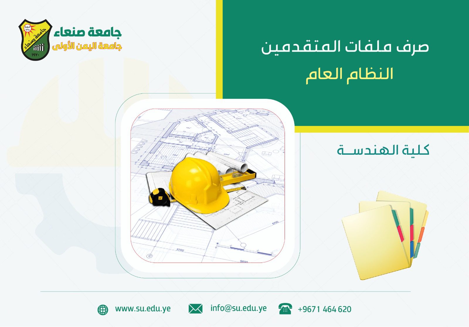 أعلنت نيابة رئاسة جامعة صنعاء لشؤون الطلاب عن بدء صرف ملفات القبول للطلاب المقبولين في كلية الهندسة، وذلك ابتداءً من يوم الأحد 27 ذو القعدة 1446هـ الموافق 25 مايو 2025م، وحتى يوم الأحد 5 ذو الحجة 1446هـ الموافق 1 يونيو 2025م.