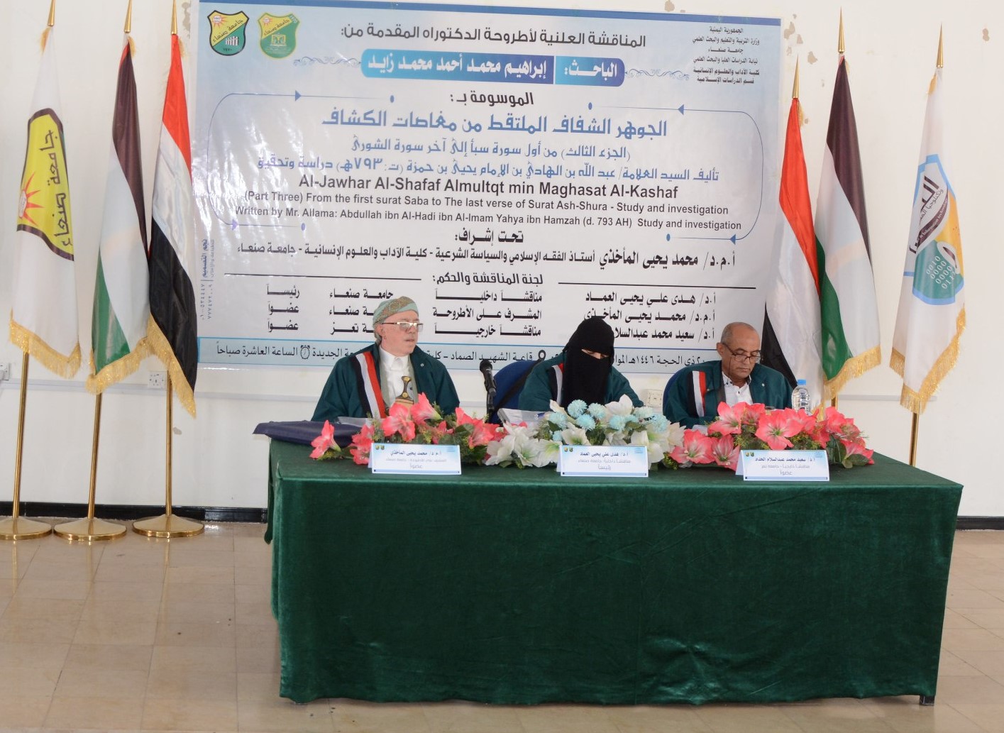نال الباحث إبراهيم محمد أحمد محمد زايد درجة الدكتوراه في قسم الدراسات الإسلامية، من كلية الآداب والعلوم الإنسانية بجامعة صنعاء؛ عن أطروحته الموسومة بـ “الجوهر الشفاف الملتقط من مغاصات الكشاف (الجزء الثالث) من أول سورة سبأ إلى آخر سورة الشورى – تأليف العلامة/ عبد الله بن الهادي بن الإمام يحيى بن حمزة (ت: 850هـ) دراسة وتحقيق”، وذلك يوم الخميس 2 ذي الحجة 1446هـ الموافق 29/5/2025م.
