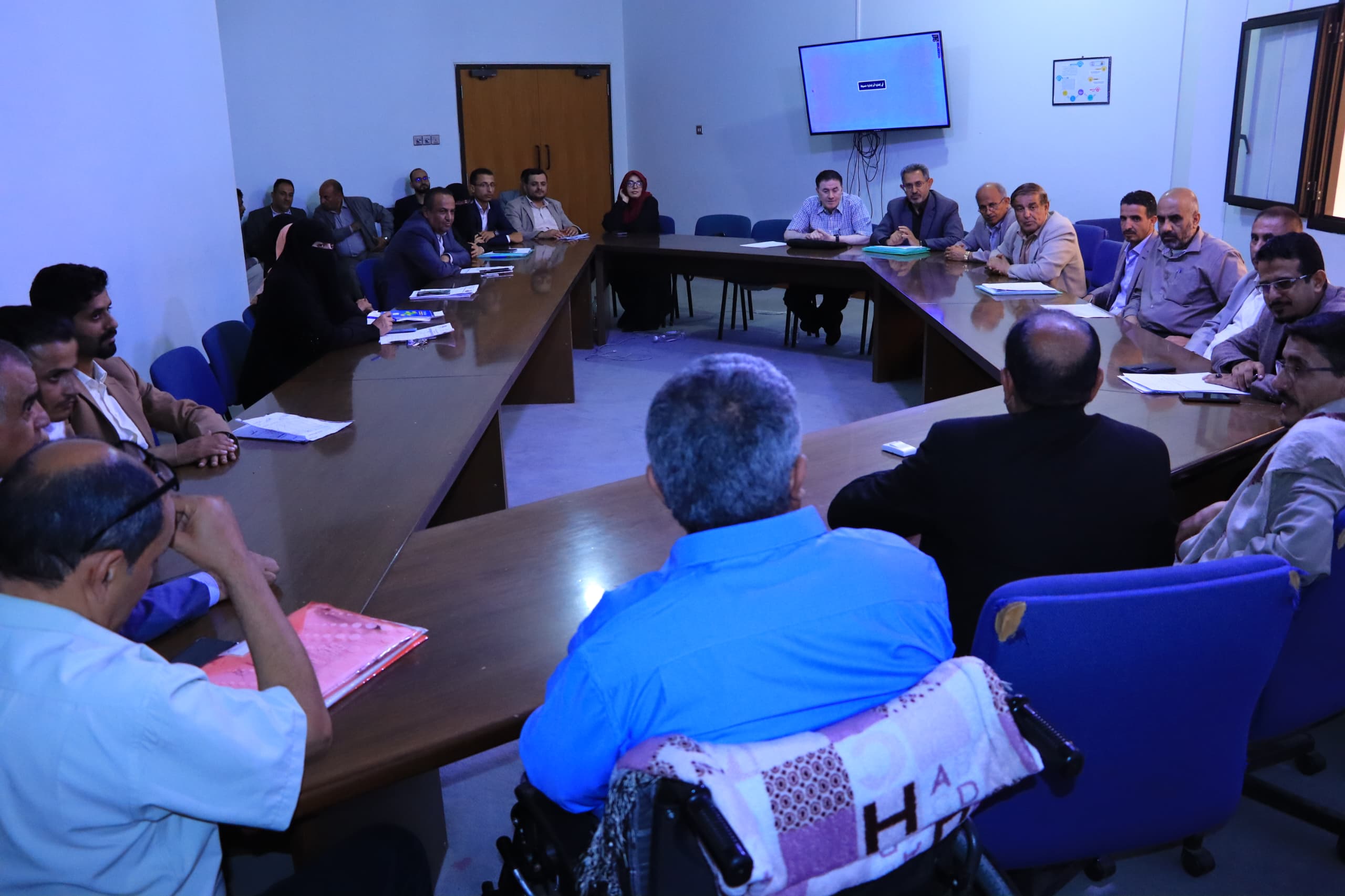 حضر الاجتماع نائب العميد لشؤون الجودة ا. د/احمد المجاهد ونائب العميد لشؤون المستشفيات ا. د/انور المغلس ونائب العميد لشؤون الطلاب ا. د/اروى عثمان وعدد من رؤوساء اللجان المختصة بالمعايير الأكاديمية ورؤوساء الأقسام واعضاء هيئة التدريس بالكلية