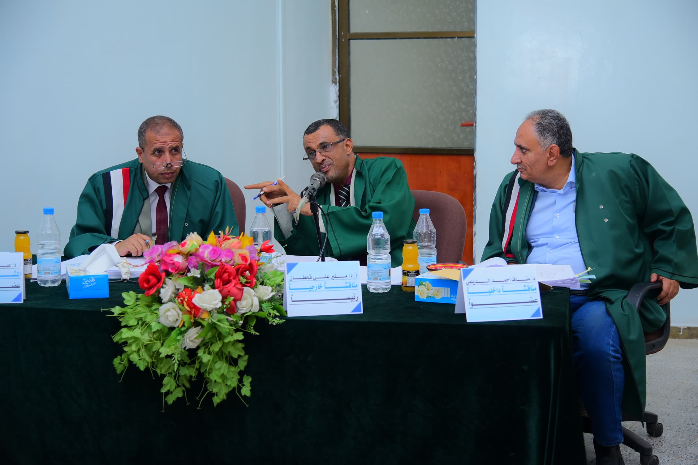 وتكونت لجنة المناقشة والحكم من الدكتور منير علي مدهش قحطان؛ مناقشًا خارجيًا ورئيسًا للجنة من جامعة تعز، والدكتور عبدالغني أحمد عبدالله دومان؛ مشرفًا رئيسًا وأكاديمية الشرطة وعضو اللجنة، والدكتور مناف أحمد علي الديلمي؛ مناقشًا داخليًا من جامعة صنعاء وعضو اللجنة.