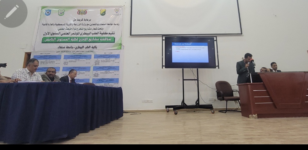 نظمت كلية الطب البيطري بجامعة صنعاء بالتعاون مع وزارة الزراعة والثروة السمكية والموارد المائية اليوم المؤتمر العلمي الأول لمناقشة مشاريع التخرج لطلاب المستوى الخامس بكلية الطب البيطري للعام الجامعي 2024- 2025م تحت شعار “مشاريع التخرج نواة البحث العلمي”.