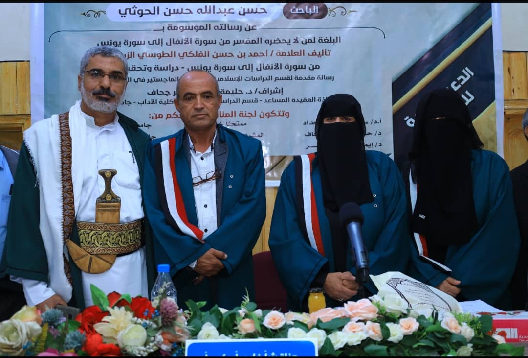 نال الباحث حسن عبدالله حسن الحوثي درجة الماجستير بنسبة ٩٤٪، تقدير ممتاز، من قسم الدراسات الإسلامية، تخصص: تفسير وعلوم قرآن، بكلية الآداب والعلوم الإنسانية بجامعة صنعاء، عن رسالته الموسومة بـ: «البلغة لمن لا يحضره المفسِّر، تأليف/ أحمد بن حسن الفلكي الطوسي الزيدي، من سورة الأنفال إلى سورة يونس – دراسة وتحقيق»، وذلك يوم الثلاثاء، الموافق ٢٢ يوليو ٢٠٢٥م.