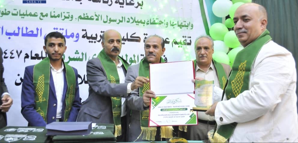 كرّم رئيس جامعة صنعاء الأستاذ الدكتور محمد أحمد البخيتي، يوم الأحد الطلاب الأوائل في كلية التربية، خلال حفل أقامته الكلية بمناسبة المولد النبوي الشريف واستقبال الطلاب المستجدين.