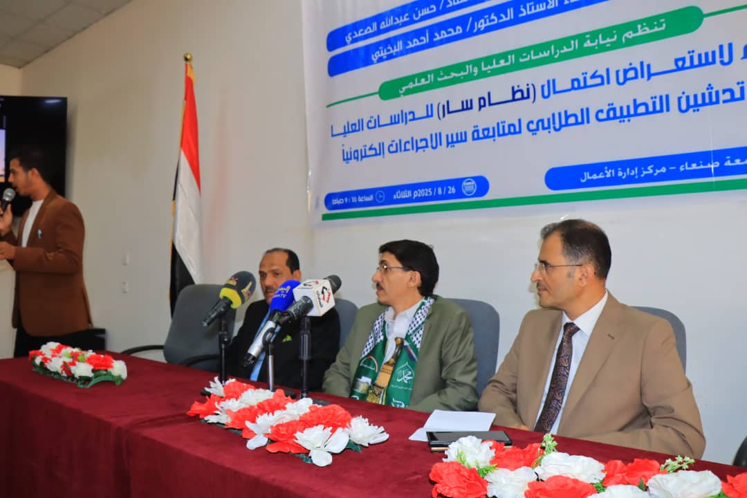 برعاية الأستاذ حسن عبدالله الصعدي، وزير التربية والتعليم والبحث العلمي، ورئيس جامعة صنعاء الأستاذ الدكتور محمد أحمد البخيتي، نظمت نيابة رئاسة الجامعة لشؤون الدراسات العليا والبحث العلمي اليوم لقاءً لاستعراض اكتمال نظام “سار” الخاص بالدراسات العليا في الجامعة، وتدشين التطبيق الطلابي لمتابعة سير الإجراءات إلكترونيًا.
