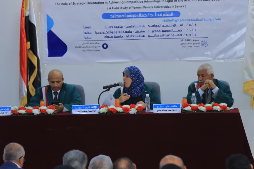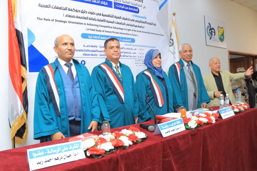 حصل الباحث فؤاد أحمد أحمد الحداء على درجة الدكتوراه في فلسفة إدارة الأعمال من مركز إدارة الأعمال للدراسات العليا بجامعة صنعاء. وكانت أطروحته بعنوان “دور التوجه الاستراتيجي في تحقيق الميزة التنافسية في ضوء دليل حوكمة الجامعات اليمنية الأهلية بأمانة العاصمة صنعاء”.وذلك يوم الثلاثاء25صفر 1447 الموافق 19 / 8 /2025م.