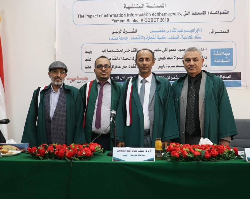نال الباحث عماد عبدالملك علي المطري درجة الماجستير في المحاسبة بتقدير عام (ممتاز) مع مرتبة الشرف، بنسبة (94%) من كلية التجارة والاقتصاد بجامعة صنعاء،عن رسالته الموسومة بـ “تأثير حوكمة تكنولوجيا المعلومات في الحد من الاحتيال في القوائم المالية للبنوك اليمنية وفقًا لإطار COBIT 2019 (دراسة ميدانية)”. وذلك في يوم الخميس 25-9-2025 الموافق 3 ربيع الآخر 1447.