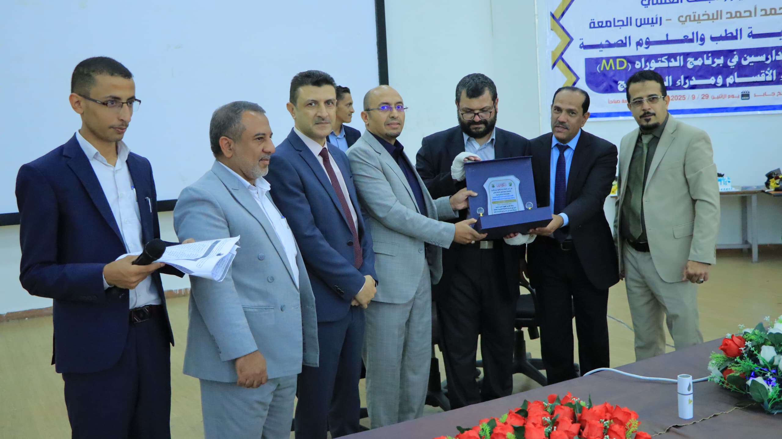 وفي كلمته بالمناسبة، أشار رئيس الجامعة الأستاذ الدكتور/ محمد أحمد البخيتي إلى الجهود الكبيرة التي تبذلها الكلية وكوادرها الأكاديمية والإدارية في تقديم تعليم طبي متميز، مؤكدًا حرص الجامعة على دعم برامج الدراسات العليا النوعية، وضرورة أن يسعى الدارسون لمضاعفة جهودهم العلمية والبحثية بما يرفع مستوى جودة التعليم الطبي ويواكب احتياجات المجتمع وسوق العمل. وأضاف الدكتور البخيتي أن الجامعة تركز على تأهيل أطباء وباحثين قادرين على الابتكار والمساهمة في تطوير المنظومة الصحية، وتشجيع البحث العلمي التطبيقي الذي يخدم المجتمع، مؤكدًا أن مخرجات البرنامج ستسهم في تعزيز مكانة الجامعة محليًا وإقليميًا.