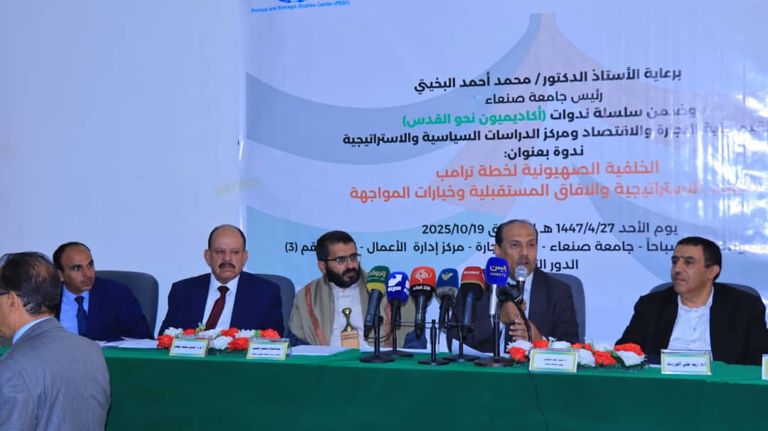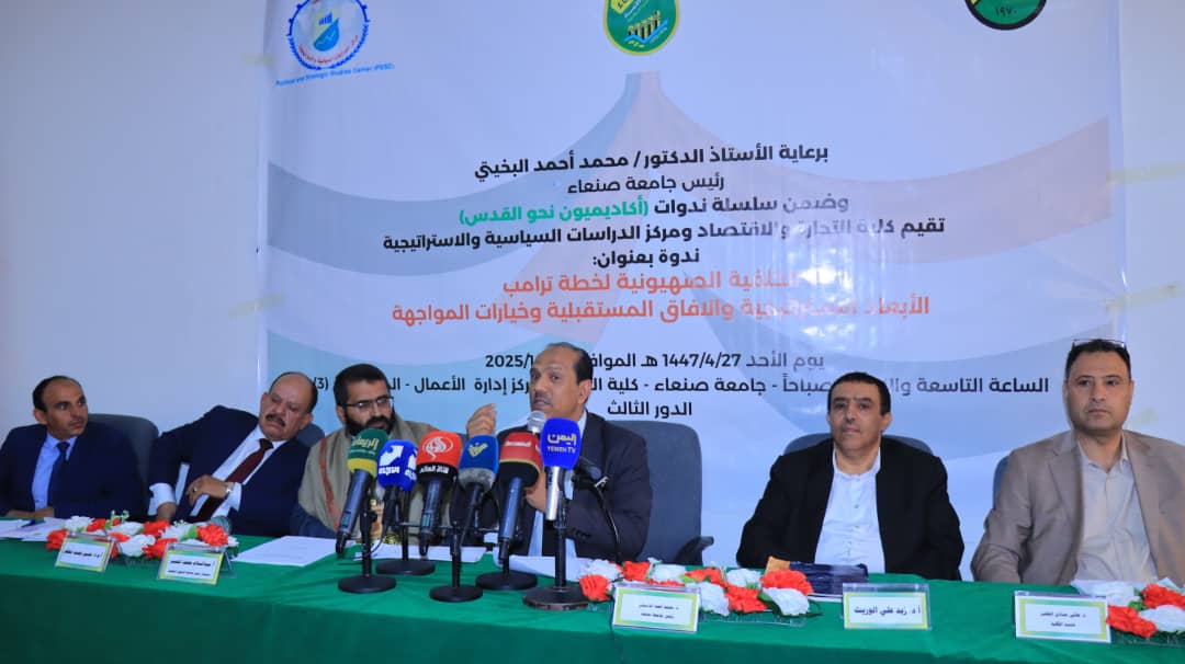 جامعة صنعاء تدشّن سلسلة ندوات “أكاديميون نحو القدس” بندوة فكرية حول الخلفية الصهيونية لخطة ترامب