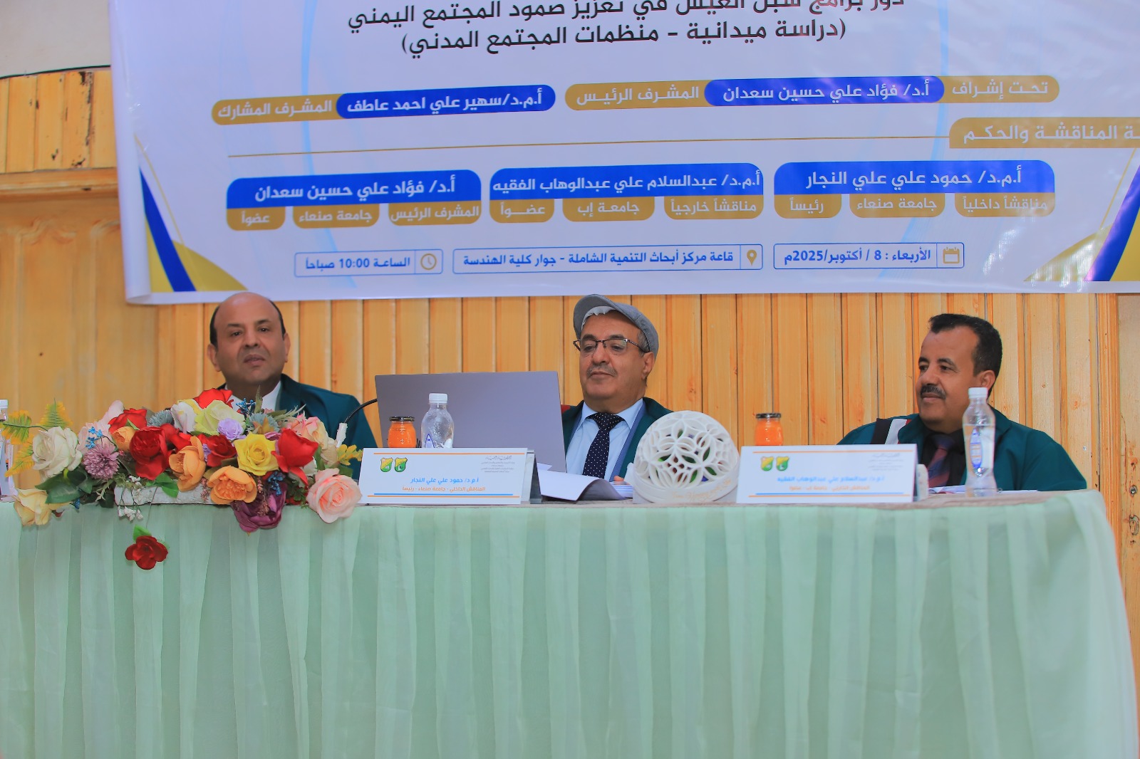 - أ.م.د. حمود علي النجار، مناقشًا داخليًا ورئيسًا للجنة.