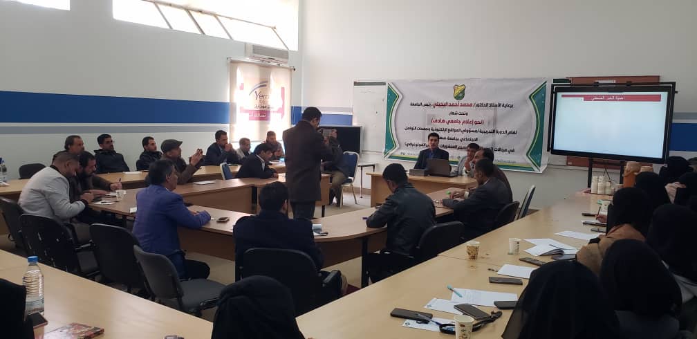 وخلال الافتتاح، أكد الأستاذ عادل الحبابي، مساعد رئيس الجامعة لشؤون الإعلام، أهمية هذه الدورة التي تركز على محاور أساسية تشمل التحرير الإخباري وتصميم المنشورات والتصوير الفوتوغرافي، مشيراً إلى اهتمام الأستاذ الدكتور محمد البخيتي، رئيس الجامعة، بتأهيل العاملين في المواقع الإلكترونية وصفحات التواصل الاجتماعي، والتوجيه بإقامة مثل هذه الدورات التدريبية للقائمين عليها لضمان رفع مستوى الجودة الإعلامية ودقة وسرعة نشر المعلومات.