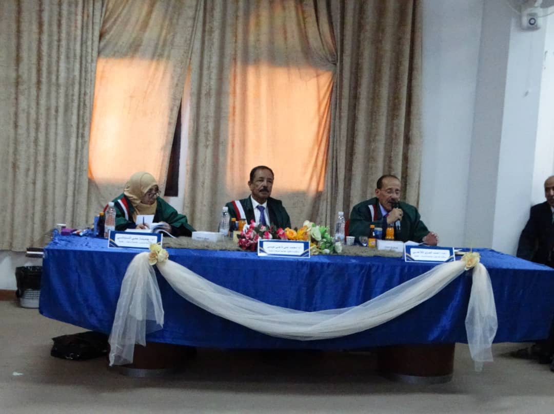 وتكونت لجنة المناقشة والحكم من الأستاذ الدكتور (محمد علي ناجي عيسى) مناقشًا داخليًا ورئيسًا للجنة والأستاذ الدكتور (أحمد العزي الملاحي) مناقشًا خارجيًا وعضو اللجنة والأستاذة الدكتورة (جميلة علي السنباني) مشرفًا رئيسًا وعضوًا للجنة والأستاذ الدكتور (وليد محمد غيلان) المشرف المشارك.