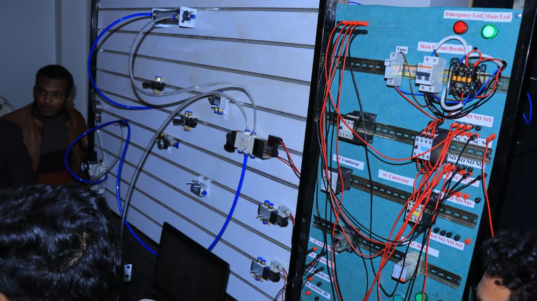 وخلال الزيارة، استمع رئيس الجامعة إلى شرحٍ مفصل من الطلاب حول آلية عمل مشروع النيوماتيك، وأهدافه التعليمية، وإمكانية الاستفادة منه في تنفيذ التجارب العملية لمقرر النيوماتيك بصورة تطبيقية، بما يسهم في تعزيز الجانب العملي وربط الجانب النظري بالتطبيق داخل المعامل الجامعية.