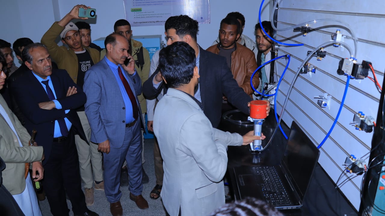 اطّلع الأستاذ الدكتور محمد أحمد البخيتي، رئيس جامعة صنعاء، اليوم، على تشغيل بنش النيوماتيك الذي نفذه عدد من طلاب المستوى الثالث بقسم هندسة الميكاترونكس بكلية الهندسة، ضمن مشاريعهم العملية، وذلك خلال زيارته التفقدية لكلية الهندسة، التي شملت عدد من القاعات الدراسية والورش والمعامل والمساحات الخضراء .