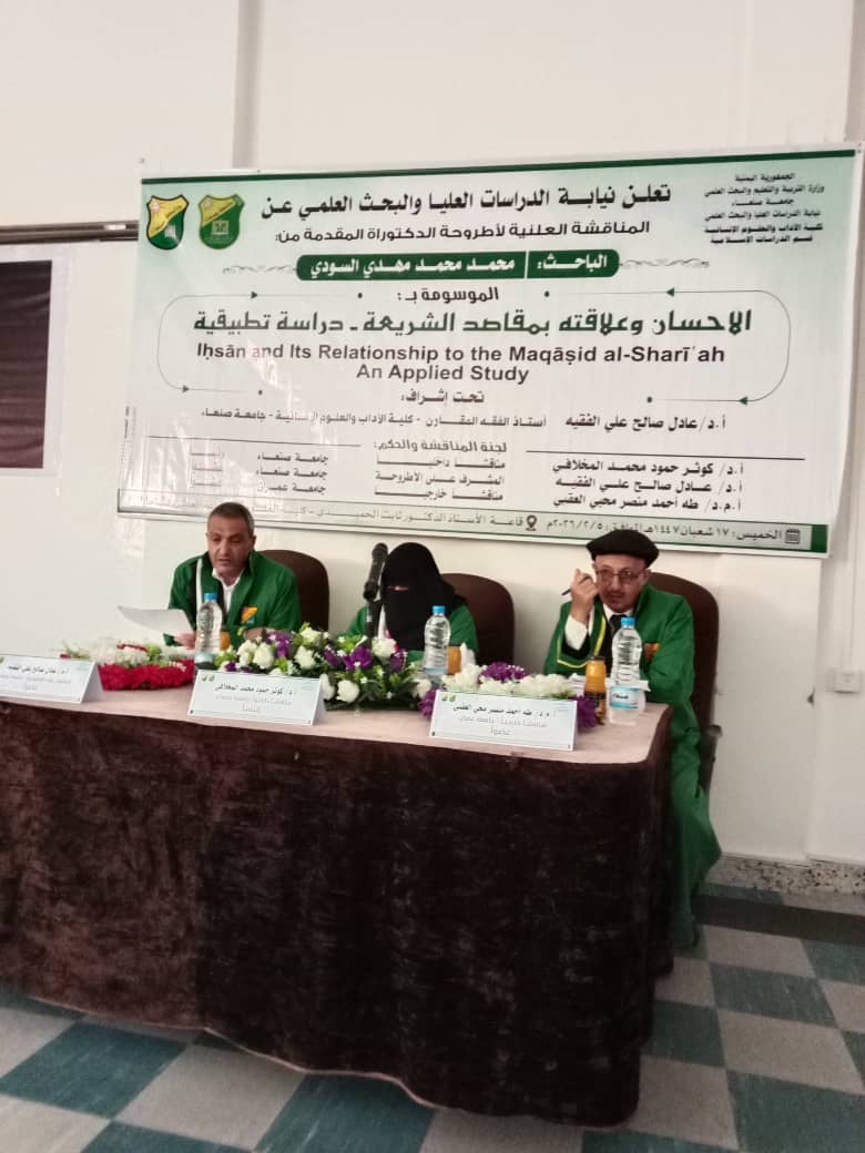 نال الباحث محمد محمد مهدي السودي درجة الدكتوراه في الدراسات الإسلامية من قسم الدراسات الإسلامية بكلية الآداب والعلوم الإنسانية، جامعة صنعاء، عن أطروحته العلمية الموسومة بـ: «الإحسان وعلاقته بمقاصد الشريعة – دراسة تطبيقية»، يوم الخميس 18 شعبان 1447هـ، الموافق 5 فبراير 2026م.