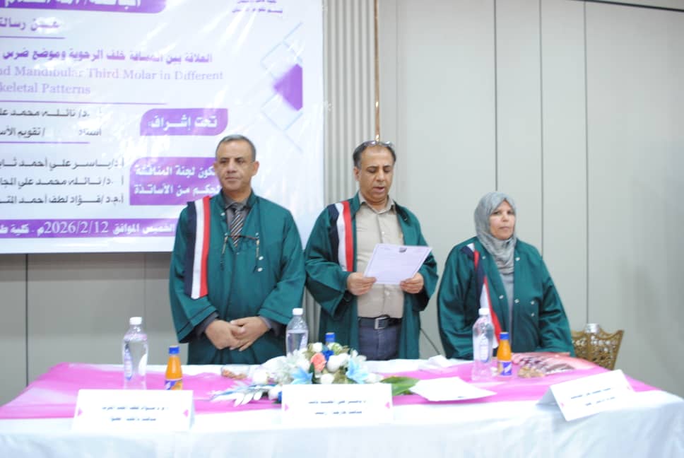 «العلاقة بين المسافة خلف الرحوية وموضع ضرس العقل السفلي في أنماط هيكلية أمامية–خلفية مختلفة»، وذلك يوم الخميس 24 شعبان 1447هـ الموافق 12 فبراير 2026م.