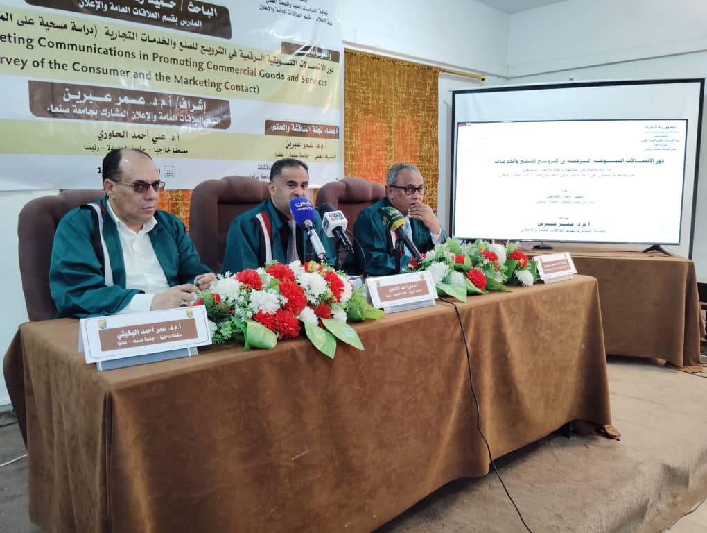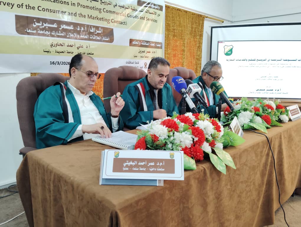نال الباحث حميد ردمان القديمي درجة الدكتوراه من كلية الإعلام بجامعة صنعاء في تخصص العلاقات العامة والإعلان، عن أطروحته الموسومة بـ “دور الاتصالات التسويقية الرقمية في الترويج للسلع والخدمات التجارية – دراسة مسحية على المستهلك والقائم بالاتصال التسويقي”، وذلك يوم الاثنين 16 مارس 2026م.