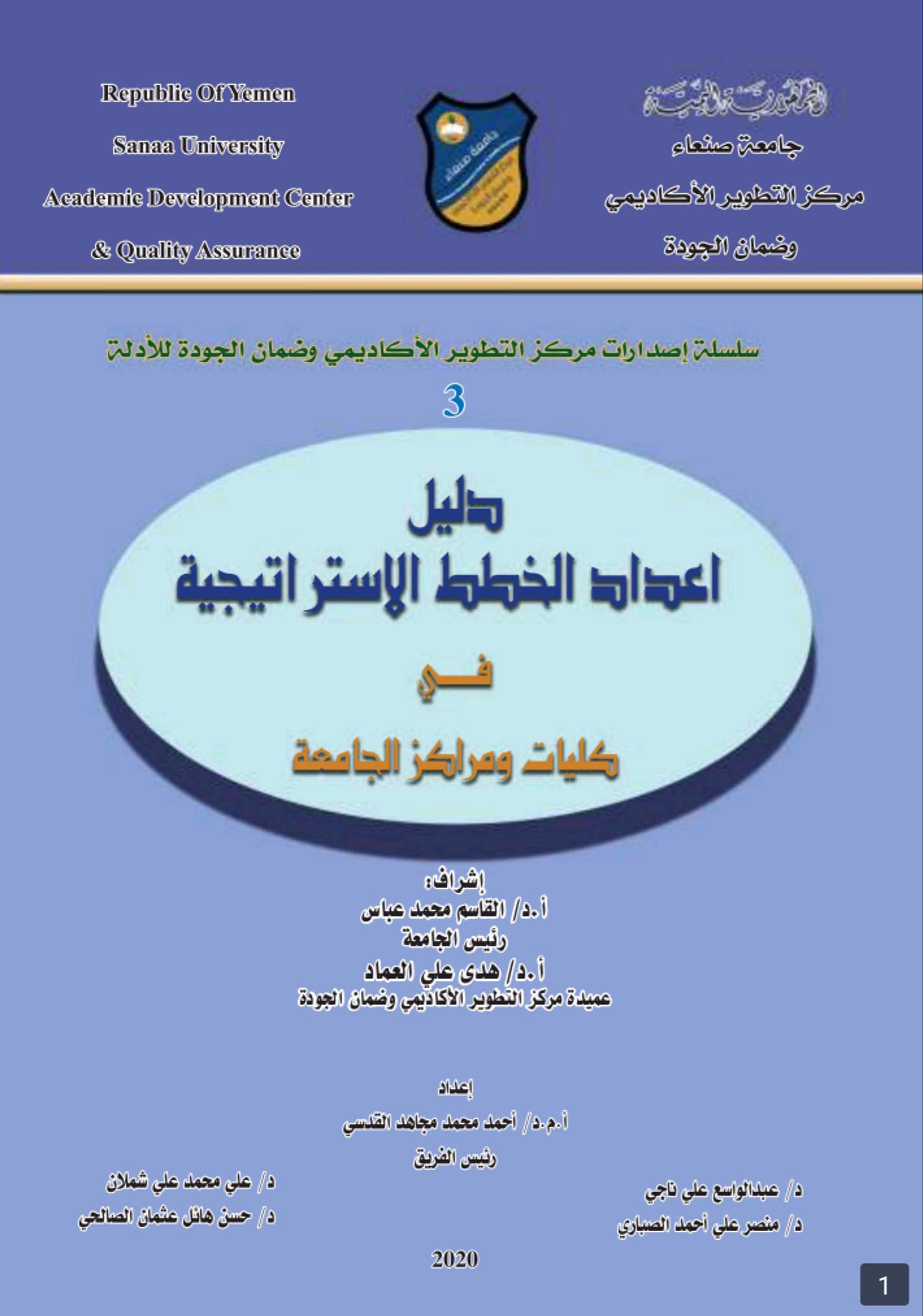 Guide for Developing Strategic Plans at Sana’a University Faculties and Centers Posted by nasim Categories Center Publications Date August 8, 2024 Guide for Developing Strategic Plans at Sana’a University Faculties and Center https://su.edu.ye/ce/wp-content/uploads/sites/4/2024/08/دليل-اعداد-الخطط-الاستراتيجيات-لكليات-ومراكز-الجامعة.pdf Share: nasim Previous post Procedural Guide for Academic Program and Course Specifications, 2021 August 8, 2024 Next post Guide for Learning Outcomes for Academic Programs and Study Courses August 8, 2024 You may also like Performance Evaluation Scale of Academic Department Heads at University Faculties 20 August, 2024 Course Syllabus Profile and Course Report Form 20 August, 2024 Measurement of Students’ Satisfaction with Services Provided by Academic Counseling 20 August, 2024