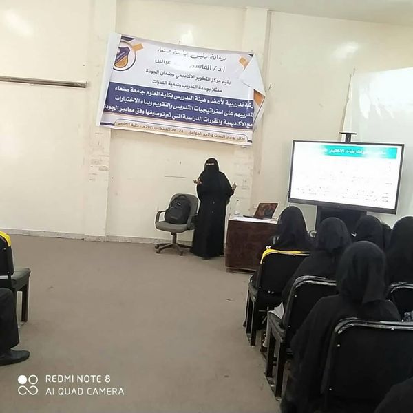 افتتحت يوم السبت الموافق 28/ 8/ 2021م في كلية العلوم الورشة التدريبية لا عضاء هيئة التدريس بكلية العلوم والخاصة بتدريبهم على استراتيجيات التقويم وبناء الاختبارات والتي أقيمت بكلية العلوم بالتنسيق مع مركز التطوير الأكاديمي وضمان الجودة جامعة صنعاء ، في اطار سعي الجامعة بتحسين اداء قدرات اعضاء هيئة التدريس وتنمية وتطوير مهاراتهم حيث كان موضوع تدريب اليوم “استراتيجيات التقييم وبناء الاختبارات” وقد تطرق المدربة د./ حورية عبد الرقيب إلى مفهوم استراتيجيات التقييم الحديثة في التعلم النشط – وانواع الاستراتيجيات والفرق بينها والمقارنة بين الاختبارات التحصيلية وكيفية المواءمة بين مخرجات التعلم واستراتيجيات التقييم الحديثة في التعلم النشط وبناء جدول المواصفات وكيفية تصميم اختبارات التقييم المناسبة وفق لائحة المواصفات تخلل ذلك مداخلات ومناقشات من المشاركين ادت الى اثراء الموضوع بشكل جيد بالإضافة الى اداء انشطة وتكاليف تتعلق ببناء الاختبارات وانواعها وسلبيات وايجابيات كل نوع من هذه الاختبارات حضر الورشة اكثر من 20 متدرب من اعضاء هيئة التدريس ومساعديهم في الكلية، وقد عبر المشاركون عن شكرهم.