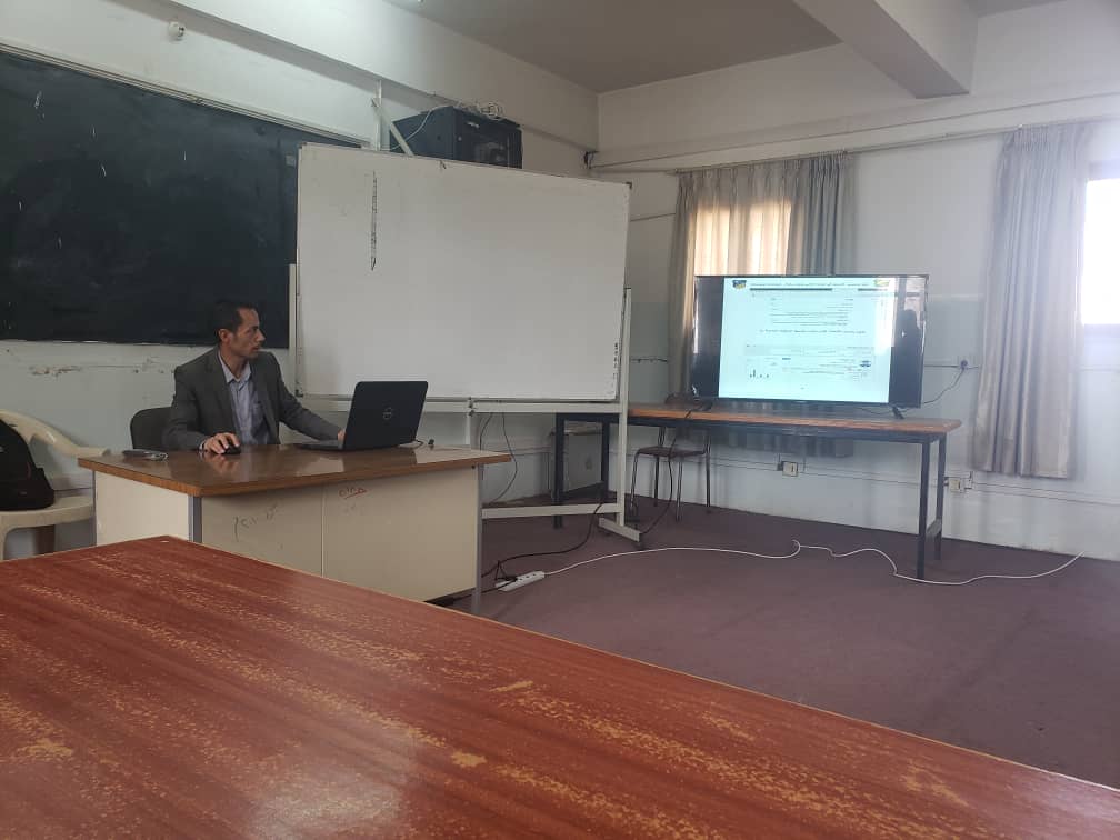 حيث قدم الدورة الدكتور/ مهدي محمد حيدر نائب العميد لشؤون، وذلك من خلال عرض باوربوينت تناول من خلاله بالشرح المفصل الخطوات الأساسية لرفع الأبحاث العلمية للموقع