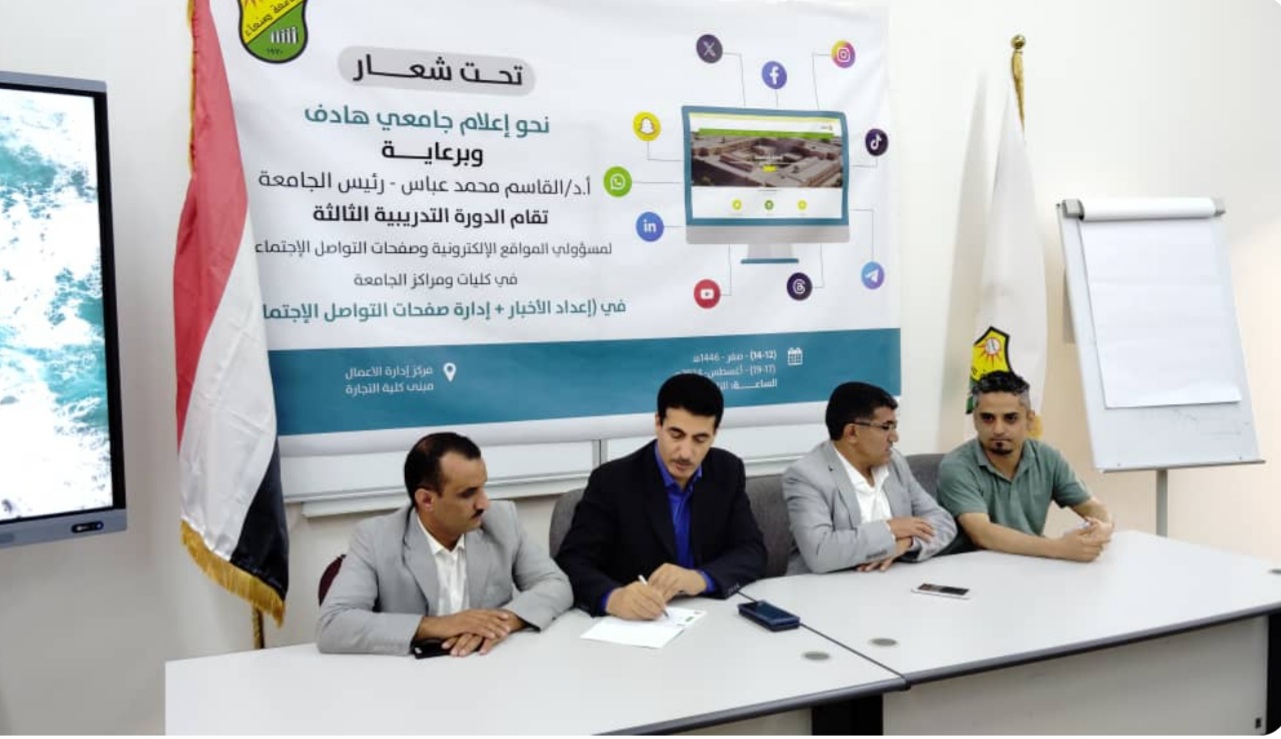 افتتاح الدورة التدريبية الثالثة لمسؤولي المواقع الإلكترونية وصفحات التواصل بجامعة صنعاء Posted by nasim التصنيفات الأخبار, التدريب والتأهيل Date أغسطس 18, 2024 افتتاح الدورة التدريبية الثالثة لمسؤولي المواقع الإلكترونية وصفحات التواصل بجامعة صنعاء https://su.edu.ye/2024/08/17/%d8%a7%d9%81%d8%aa%d8%aa%d8%a7%d8%ad-%d8%a7%d9%84%d8%af%d9%88%d8%b1%d8%a9-%d8%a7%d9%84%d8%aa%d8%af%d8%b1%d9%8a%d8%a8%d9%8a%d8%a9-%d8%a7%d9%84%d8%ab%d8%a7%d9%84%d8%ab%d8%a9-%d9%84%d9%85%d8%b3%d8%a4/ Share: nasim المقال السابق زيارة ميدانية للجنة التقييم الداخلي لمتطلبات الاعتماد البرامجي بجامعة صنعاء لكلية الطب البيطري يوم الثلاثاء بتاريخ 13/8/2024م الموافق9/2/1445 أغسطس 18, 2024 المقال التالي إختتام الدورة الثالثة لمسؤولي المواقع الإلكترونية وصفحات التواصل الإجتماعي في كليات ومراكز جامعة صنعاء أغسطس 20, 2024 You may also like كلية العلوم تنظم ورشة نوعية حول استراتيجيات التعليم والتعلم . 7 مارس, 2026 رئيس الجامعة يؤكد دعم مسارات الجودة… وكلية التربية بخولان تحصل على الاعتماد الذهبي المؤسسي 17 فبراير, 2026 كلية التجارة والاقتصاد تنظم ورشة تدريبية لأعضاء هيئة التدريس حول استراتيجيات التعليم والتعلم 17 فبراير, 2026