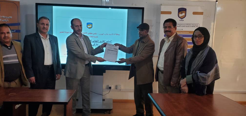 مجلس الاعتماد الأكاديمي : يتسلم التقرير النهائي من فريق المراجعين الخارجيين للاعتماد المؤسسي لكلية الزراعة بجامعة صنعاء