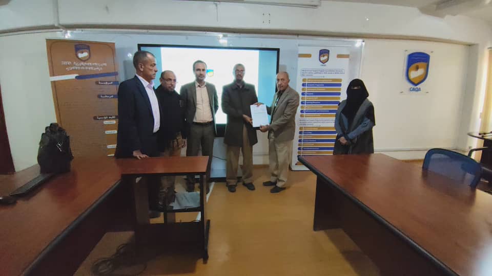 وجاء عملية التسليم بعد الانتهاء من مراجعة كافة الوثائق التي طلبها الفريق كشواهد و أدلة اثناء الزيارة الميدانية للكلية.