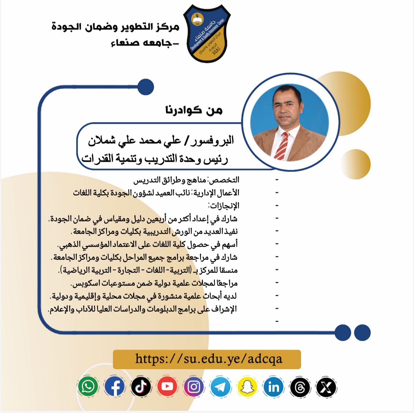 بطاقة تعريفية لأحد كوادر مركز التطوير وضمان الجودة_ جامعة صنعاء