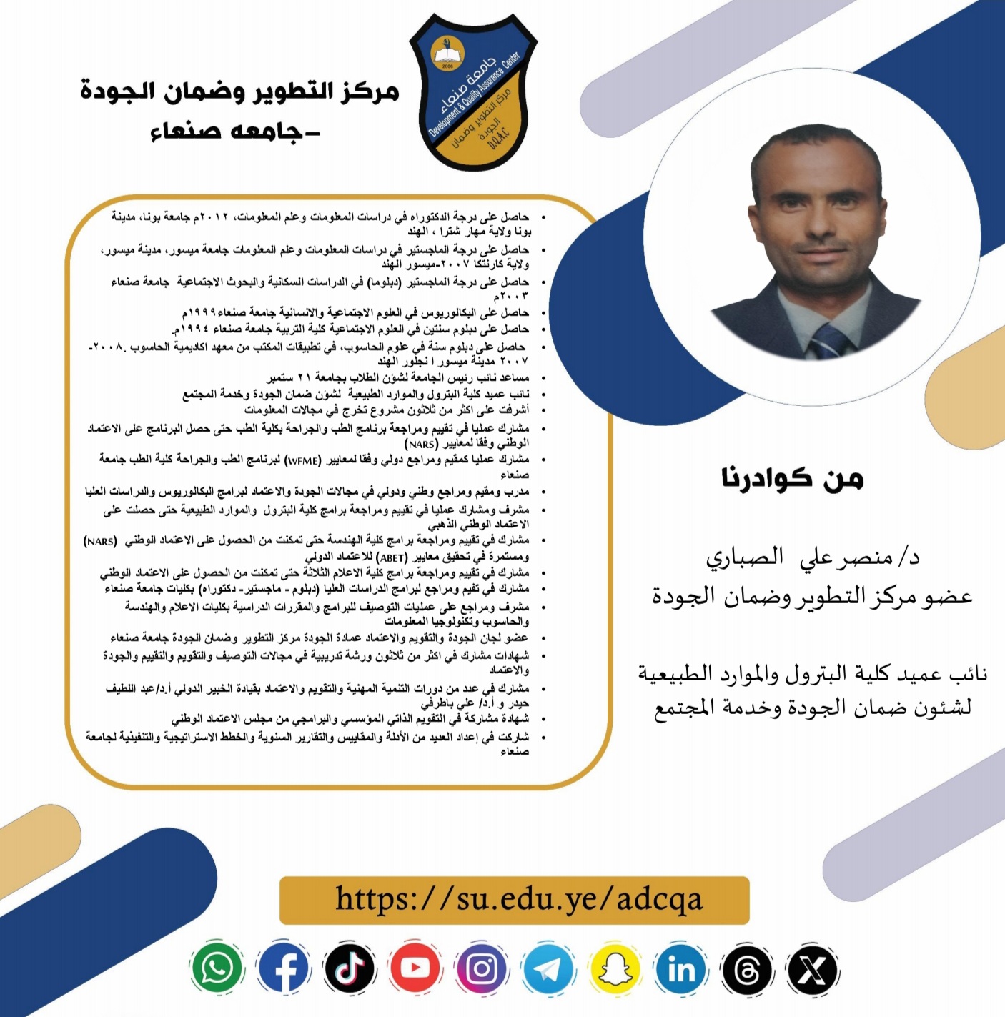 بطاقة تعريفية لأحد كوادر مركز التطوير وضمان الجودة_ جامعة صنعاء
