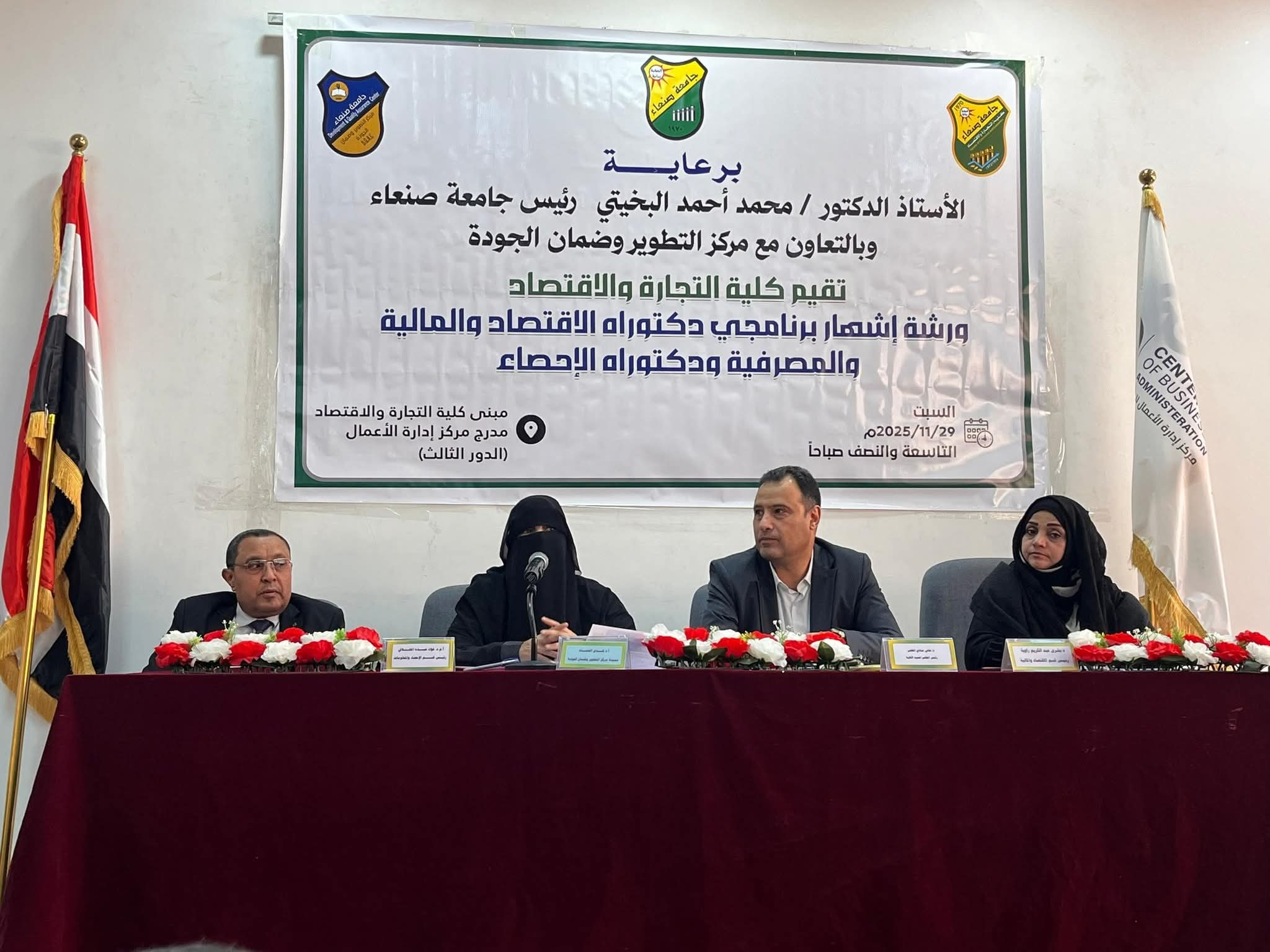 برعاية الأستاذ الدكتور محمد أحمد البخيتي رئيس جامعة صنعاء، وإشراف مركز التطوير وضمان الجودة، انعقدت اليوم السبت الموافق 29نوفمبر 2025م ورشة تدشين وإشهار برنامجي دكتوراه الاقتصاد والمالية والمصرفية و دكتوراه الإحصاء. وفي الفعالية التي حضرها عميد الكلية الدكتور هاني …