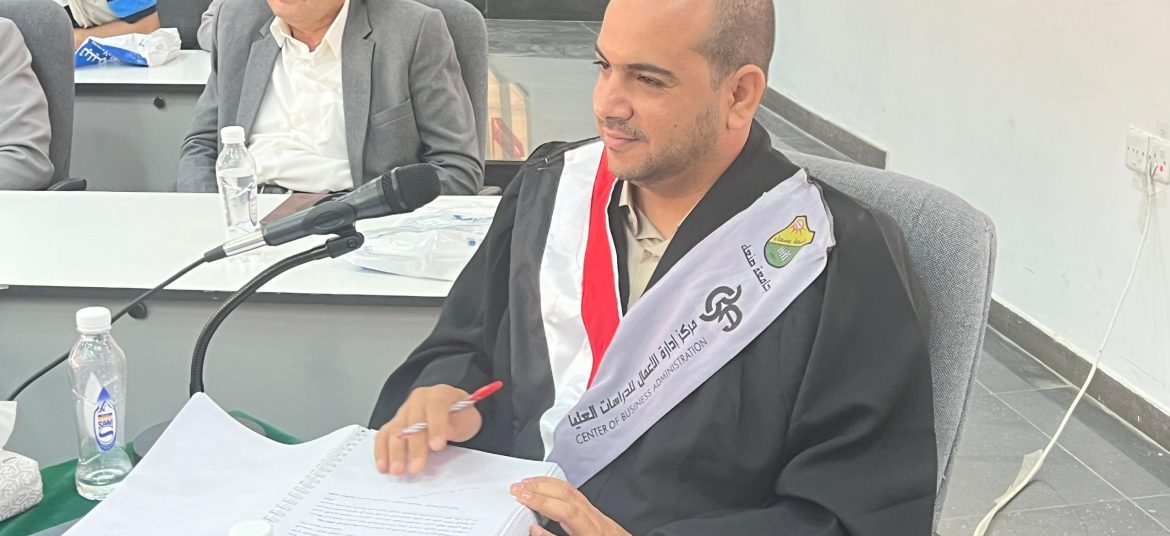 وفي بداية المناقشة التي حضرها عدد من الأكاديميين والباحثين، قام الباحث بعرض موجز عن أبرز مضامين أطروحته، مستعرضاً أبعاد الدراسة ومشكلتها واهدافها والأساليب والادوات التي استخدمها في جمع البيانات، وبعد ذلك قام أعضاء اللجنة بمناقشة الباحث وإبداء ملاحظاتهم وتصويباتهم على الأطروحة، وفي نهاية المناقشة أقرت لجنة المناقشة والحكم منح الباحث / ياسر محمد عبدالعزيز الخالد درجة الدكتوراه في فلسفة إدارة الأعمال من مركز إدارة الأعمال بجامعة صنعاء