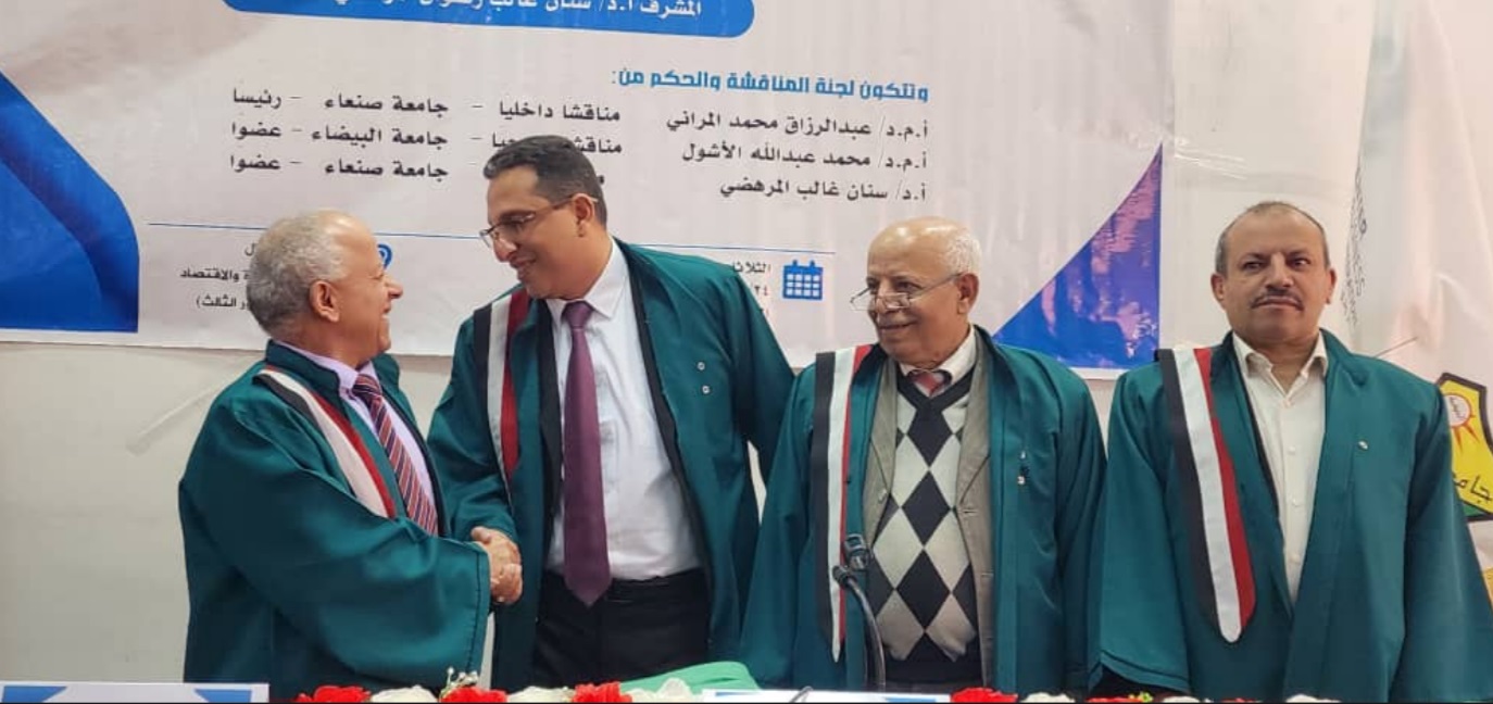 نال الباحث عبدالحكيم محمد حسن الشرفي درجة الدكتوراة في فلسفة إدارة الأعمال باللغة الانجليزية من مركز إدارة الأعمال للدراسات العليا بجامعة صنعاء، وذلك عن اطروحته الموسومة بـ: أوالموسومة بعنوان: