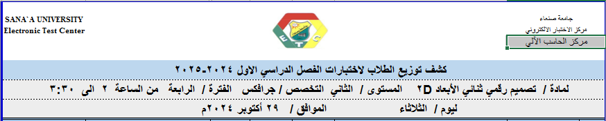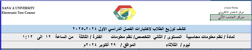 توزيع الطلبة على لجان الاختبارات ليوم 29 اكتوبر 2024م