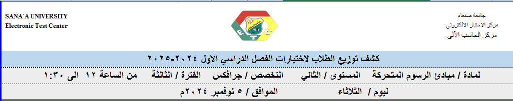توزيع الطلبة على لجان الاختبارات ليوم 5نوفمبر 2024م