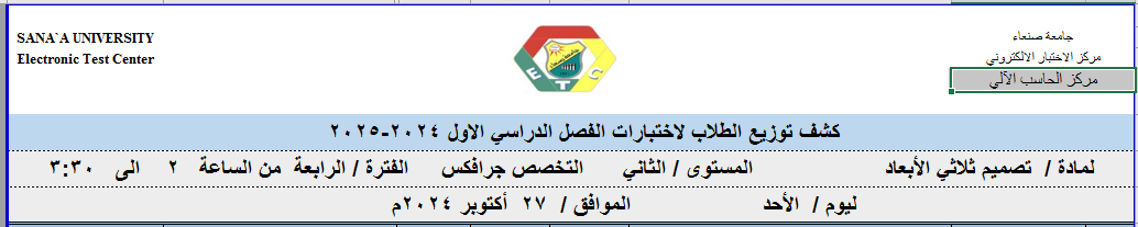 توزيع الطلبة على لجان الاختبارات ليوم 27 اكتوبر 2024م