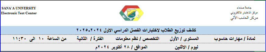 توزيع الطلبة على لجان الاختبارات ليوم 28 اكتوبر 2024م