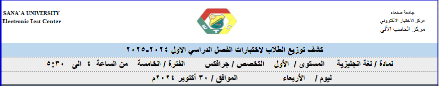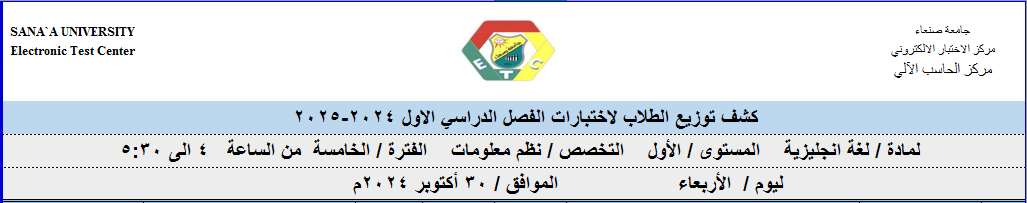 توزيع الطلبة على لجان الاختبارات ليوم 30 اكتوبر 2024م