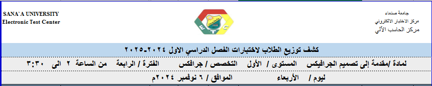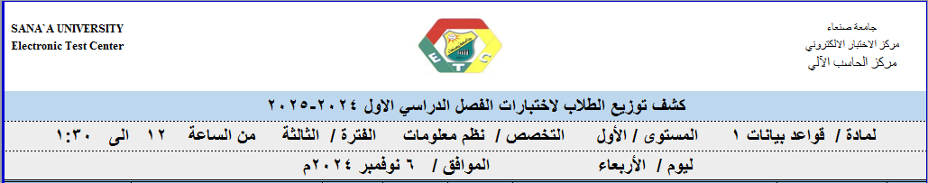توزيع الطلبة على لجان الاختبارات ليوم 6نوفمبر 2024م