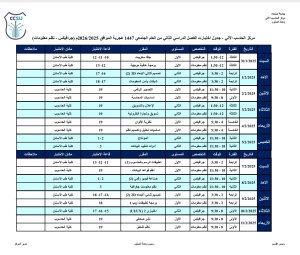 مركز الحاسب الآلي – جدول اختبارت الفصل الدراسي الثاني من العام الجامعي 1447 هجرية الموافق 2026/2025م (جرافيكس – نظم معلومات) Posted by مركز الحاسب الآلي جامعة صنعاء التصنيفات الأخبار Date يناير 25, 2026 مركز الحاسب الآلي – جدول اختبارات الفصل الدراسي الثاني من العام الجامعي 1447 هجرية الموافق 2026/2025م (جرافيكس – نظم معلومات). Share: مركز الحاسب الآلي جامعة صنعاء المقال السابق رحلة الإبداع اللوني لطلبة الجرافيكس: من أساسيات اللون إلى فن البورتريه يناير 25, 2026 You may also like رحلة الإبداع اللوني لطلبة الجرافيكس: من أساسيات اللون إلى فن البورتريه 3 يناير, 2026 إعلان فتح باب التظلمات 17 ديسمبر, 2025 استمرار التسجيل في برنامج دورات رخصة قيادة الحاسوب جامعة صنعاء. 11 ديسمبر, 2025