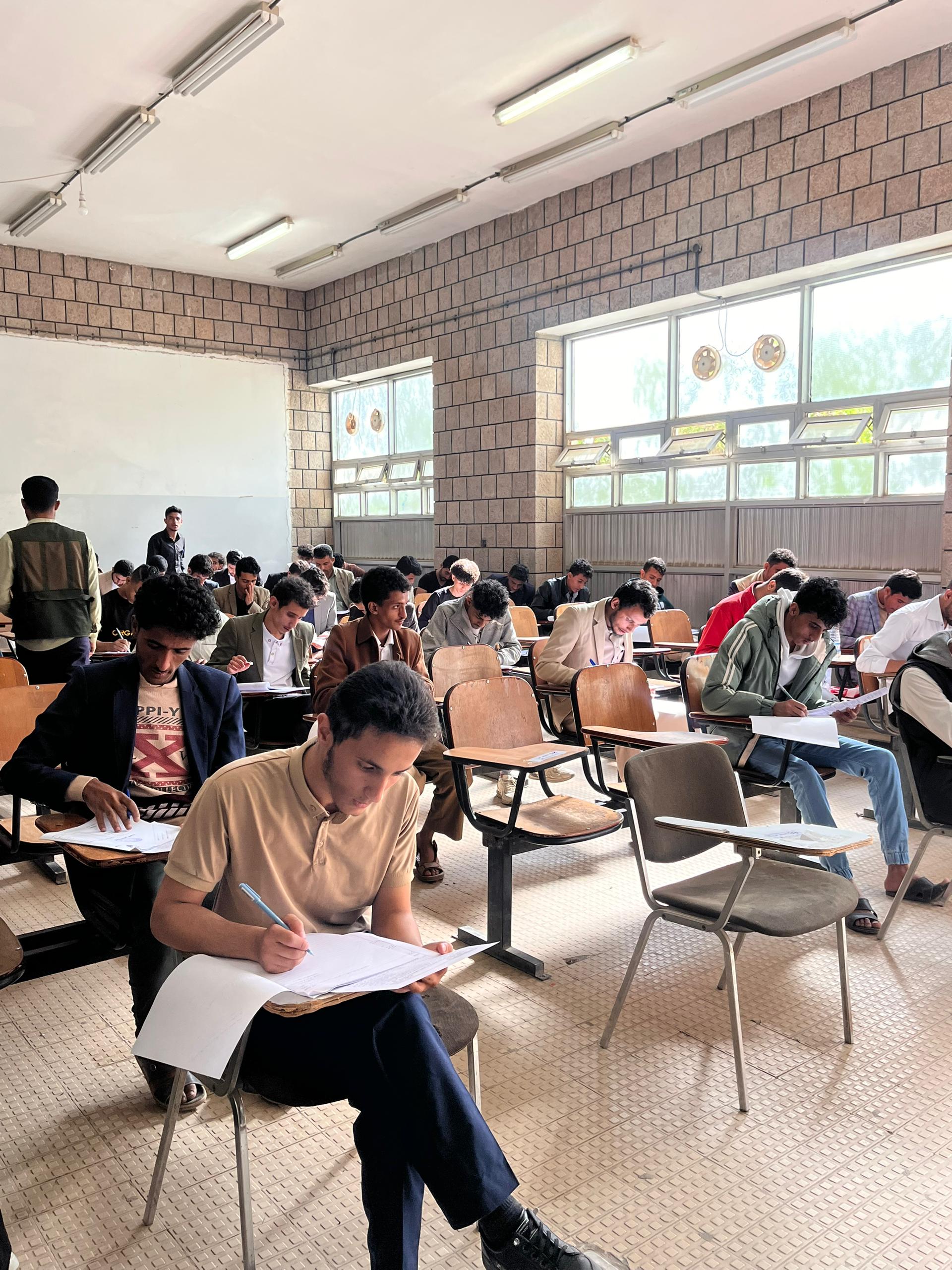 دشنت كلية التجارة والاقتصاد بجامعة صنعاء، اليوم السبت بتاريخ 12 ربيع الآخر 1447، الموافق 4 أكتوبر 2025، الاختبارات النهائية للفصل الدراسي الأول للعام الجامعي 2025/2026، في أجواء يسودها التنظيم والانضباط والحرص على تلبية معايير جودة الاختبارات.