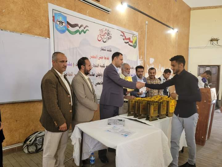 كلية التجارة والاقتصاد تكًرم طلابها وطالباتها مندوبي ومندوبات الدفع واعضاء ملتقى الطالب الجامعي واللجان العلمية التصنيفات الأخبار Date فبراير 27, 2024 شارك:كلية التجارة والاقتصاد تكًرم طلابها وطالباتها مندوبي ومندوبات الدفع واعضاء ملتقى الطالب الجامعي واللجان العلمية بحضور نائب رئيس الجامعة لشؤون الطلاب الاستاذ الدكتور محمد شكري. شارك: mbeshr المقال السابق جدول اختبارات دورة الأونكس برو للعام الجامعي 2023- 2024 فبراير 27, 2024 المقال التالي المناقشة العلنية لرسالة الماجستير بعنوان أثر عمليات إدارة المعرفة في عملية اتخاذ القرار في مراكز الوزارات السيادية اليمنية فبراير 29, 2024 You may also like قسم إدارة الأعمال يعقد سمنارا علميا لمناقشة خطة اطروحة دكتوراه 9 مارس, 2026 كلية التجارة والاقتصاد تنظم ورشة تدريبية لأعضاء هيئة التدريس حول استراتيجيات التعليم والتعلم 16 فبراير, 2026 إعــــــــــــــــــــلان مناقشة علنية لرسالة ماجستير 16 فبراير, 2026