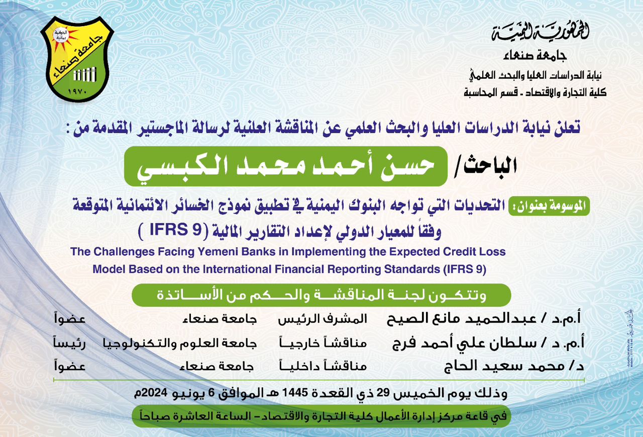 “التحديات التي تواجه البنوك اليمنية في تطبيق نموذج الخسائر الائتمانية المتوقعة وفقاً للمعيار الدولي لإعداد التقارير المالية (IFRS 9)”