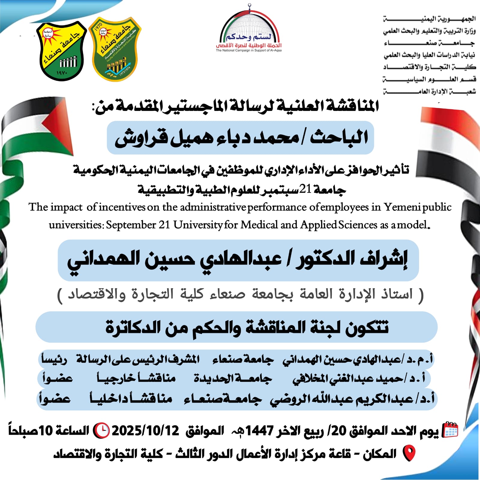 اعلااان مناقشة التصنيفات الأخبار Date أكتوبر 8, 2025 شارك: شارك: كلية التجارة والإقتصاد جامعة صنعاء المقال السابق كشف بشهادات تخرج رقم 27 للعام (2023-2024) يونيو+اكتوبر أكتوبر 8, 2025 المقال التالي كشف بشهادات تخرج رقم 28 للعام (2023-2024) يونيو+اكتوبر أكتوبر 20, 2025 You may also like قسم إدارة الأعمال يعقد سمنارا علميا لمناقشة خطة اطروحة دكتوراه 9 مارس, 2026 كلية التجارة والاقتصاد تنظم ورشة تدريبية لأعضاء هيئة التدريس حول استراتيجيات التعليم والتعلم 16 فبراير, 2026 إعــــــــــــــــــــلان مناقشة علنية لرسالة ماجستير 16 فبراير, 2026