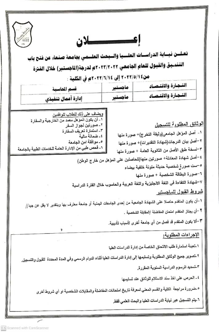 إعلان للدراسات العليا 2022-2023م