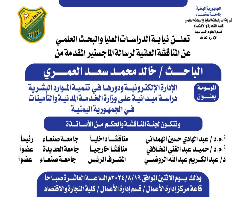 14 أغسطس تعلن نيابة الدراسات العليا والبحث العلمي عن المناقشة العلنيةلرسالة الماجستير المقدمة من الباحث/ خالدمحمد سعد العمري Posted by رشاد الخيواني التصنيفات الأخبار ملخص-الرسالة-خالد-العمري Read More