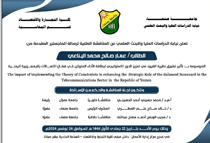 اعلااااااان لنيابة الدراسات العليا والبحث العلمي عن المناقشة العلنية لرسالة الماجستير التصنيفات الأبحاث العلمية, الأخبار نوفمبر 1, 2024 Read More