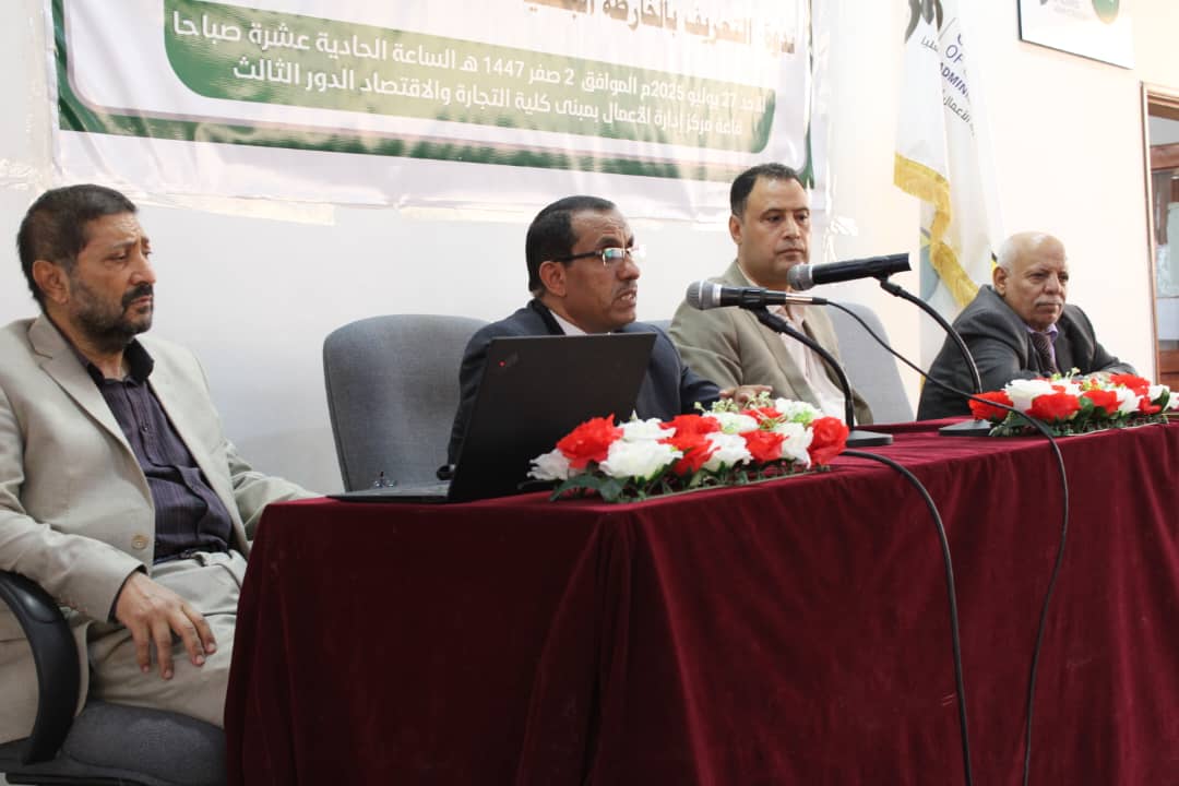 Sana’a, Yemen – Under the patronage of Prof. Mohammed Ahmed Al-Bukhaiti, Sana’a University Rector, the Faculty of Commerce and Economics successfully hosted an introductory symposium on the Yemeni National Research Roadmap for its postgraduate students from all disciplines. The event took place today, Sunday, Safar 2, 1447 Hijri, corresponding to July 7, 2025.